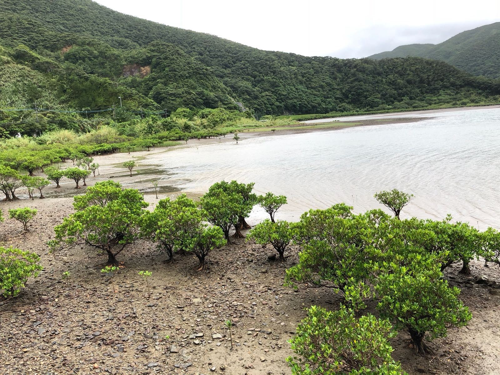 若干雨で海が濁っていました