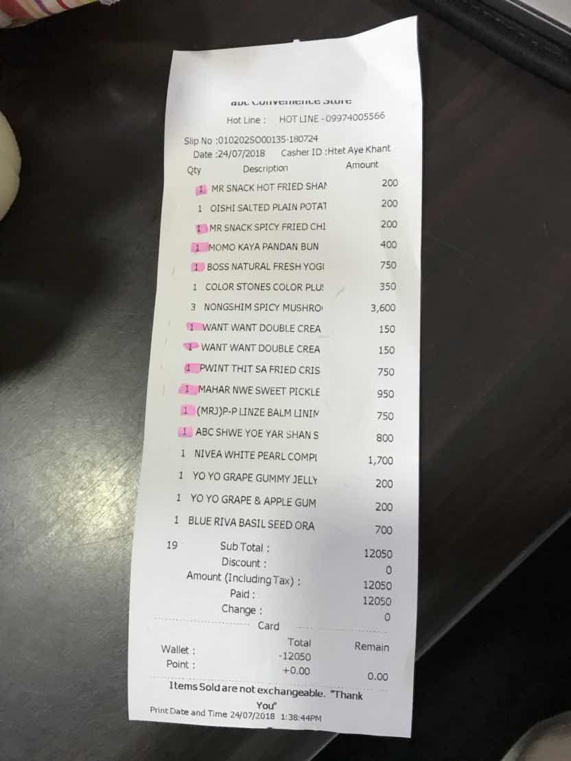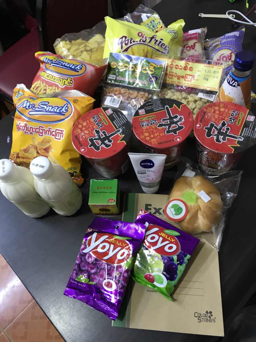 ミャンマーのコンビニで1000円分買ったらどのくらい商品を買うことができる???